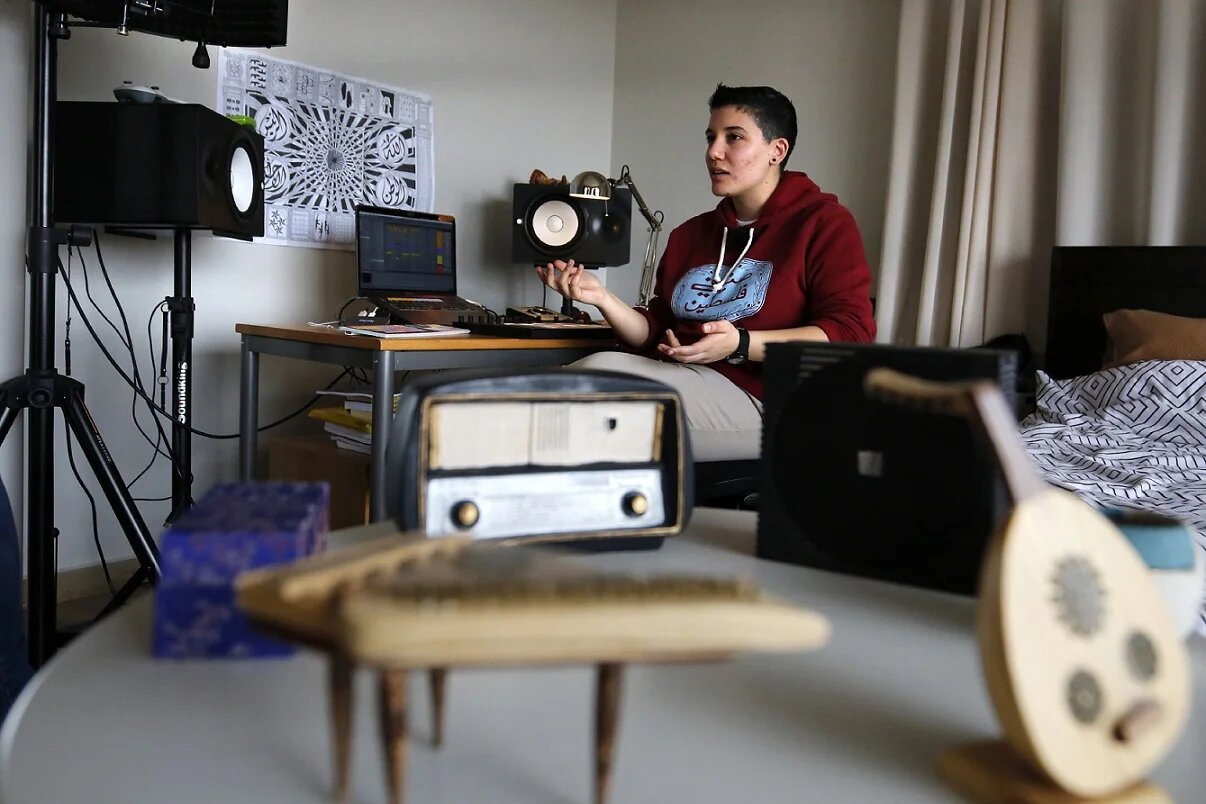 « J’écoutais, j’écoutais, puis je prenais un petit bout de la musique, je l’intégrais au logiciel et je posais un rythme dessus, semblable à celui de la musique mais aux accents plus électro », explique cette Palestinienne de 23 ans.