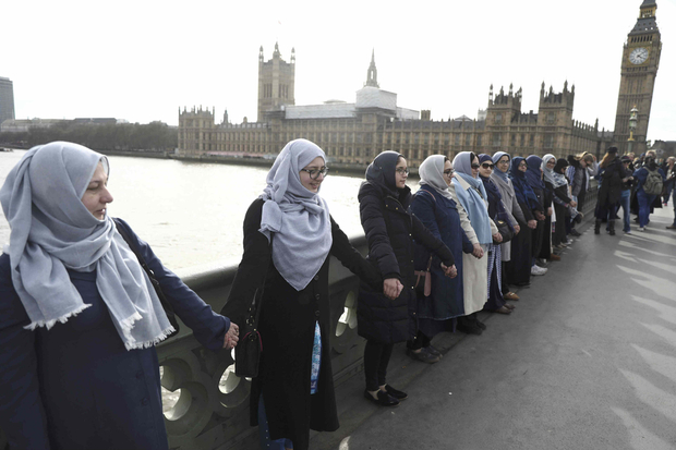 Des musulmanes forment une chaîne humaine à Westminster Bridge après l’attentat