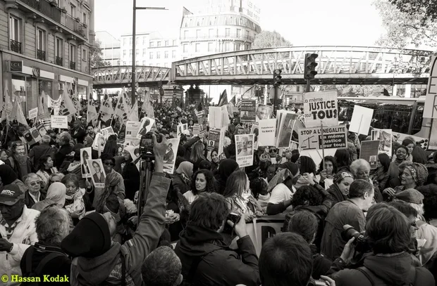 PARIS – Samedi 31 octobre, ils étaient des milliers – « racisés » (issus des minorités et renvoyés à une appartenance de race réelle ou fantasmée) ou « blancs » – à marcher sur la Bastille. Répondant à l’appel de la MAFED (la Marche des femmes pour la dignité), une foule compacte – 3 000 selon les autorités, 10 000 selon les organisateurs – était venue dénoncer le « racisme d’État » et « les violences policières ».