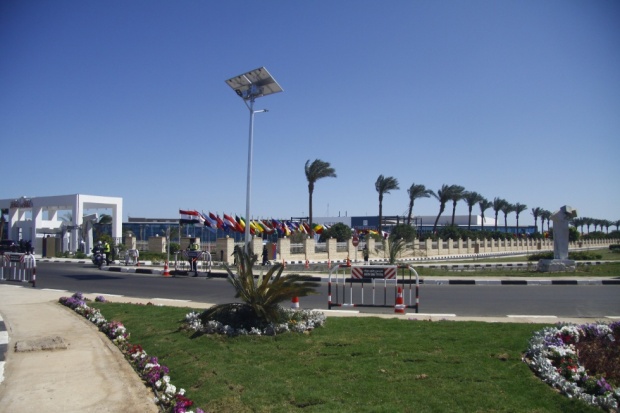 Des bannières reprenant le slogan de l'événement étaient visibles partout, des salles d’attente de l'aéroport jusqu’aux halls des hôtels en passant par les barres chocolatées servies sur les vols des compagnies aériennes phares du pays. Des images représentant Sissi, sous les auspices duquel la conférence a eu lieu, ont été déployées au bord des routes. Les lampadaires à travers la ville ont été équipés de panneaux solaires.