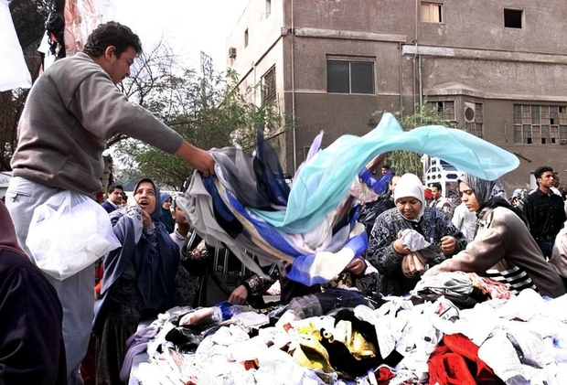 Le commerce des vêtements d’occasion a prospéré dans la ville méditerranéenne de Port Saïd, qui, à l’époque, resta pendant des années une zone de libre-échange en Égypte, avant d’être interdit en 2002, suite à une soi-disant tentative d’assassinat contre Hosni Mubarak, le président évincé en 1999.