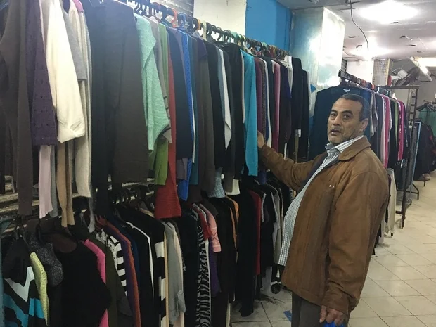 Essam Ibrahim, commerçant de 55 ans qui a repris l’affaire familiale, trouve qu’avec les vêtements d’occasion, on en a pour son argent.