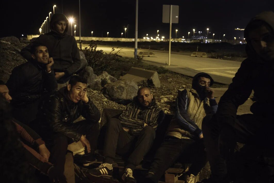 Dans les blocs de béton du port dorment tous ceux qui ne vont ni au centre pour mineurs, ni au centre pour majeurs, en majorité des Marocains et des Algériens. Mustafa, 21, Ibrahim 21, Mohssine 31, Mustafa 21 et Bilal 24. Le 19 février 2019.