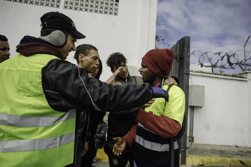 Sur le port de Ceuta, les migrants se sont organisés pour se partager le travail. Les Maghrébins travaillent le matin puis laissent la place aux Africains subsahariens. Parfois, des tensions surgissent. Le 22 février 2019.