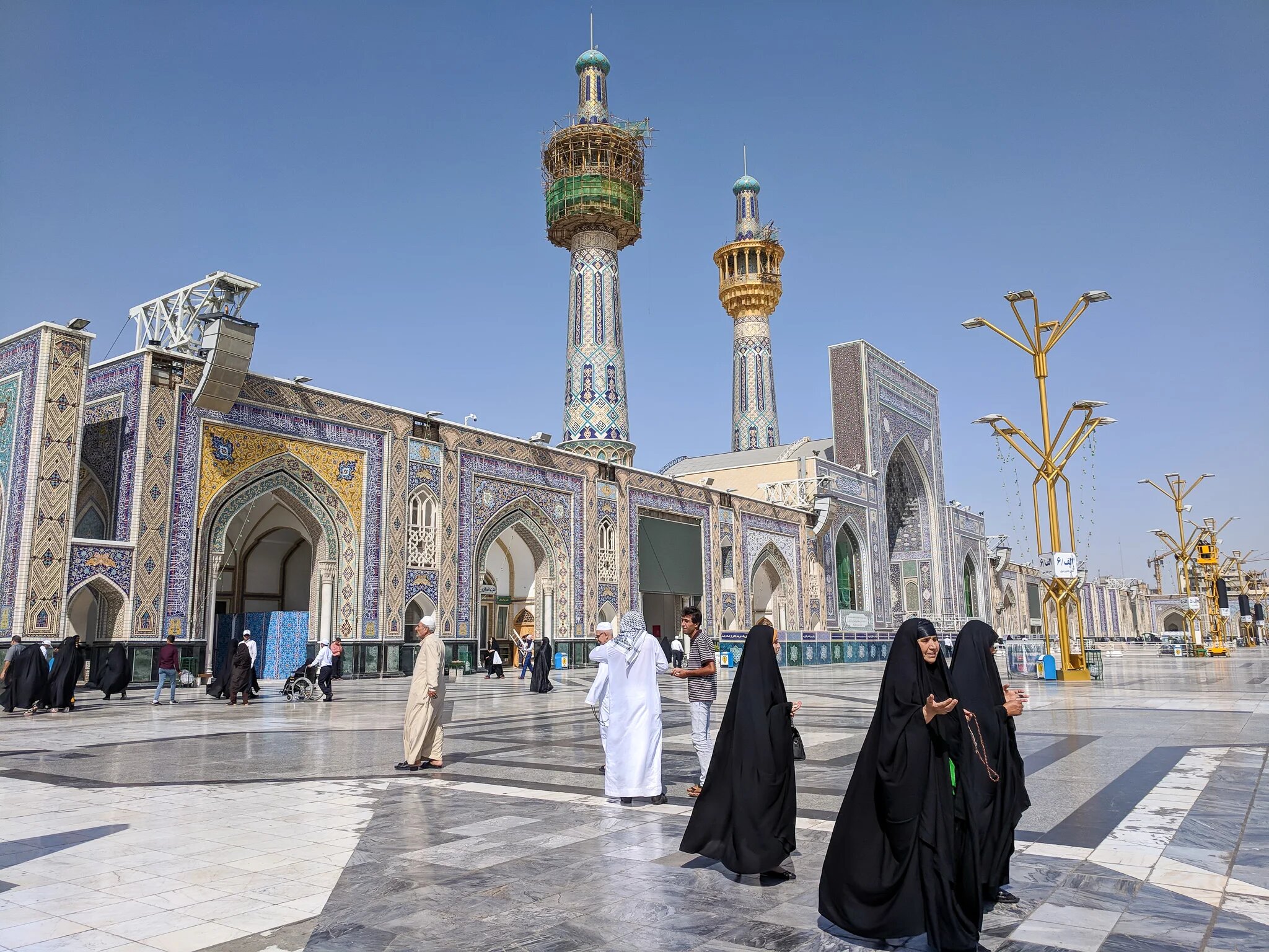Le mausolée de l’imam Reza à Mechhed, capitale spirituelle de l’Iran, abrite le tombeau du huitième imam des duodécimains (Les Douze imams sont pour les chiites duodécimains les successeurs spirituels et politiques après la mort du prophète Mohammed), qui a vécu au IXe siècle. Il a été construit en 818 après sa mort. Le mausolée est le lieu de pèlerinage le plus visité en Iran par les chiites et les sunnites : le complexe, y compris les cours environnantes, est plus grand que ceux de La Mecque ou de Médine, les deux plus saints lieux de l’islam. Le site actuel date de 1977, lorsque les quartiers ont été démolis pour que le sanctuaire devienne le point de convergence des artères entrant dans Mechhed (Ali Afaq).