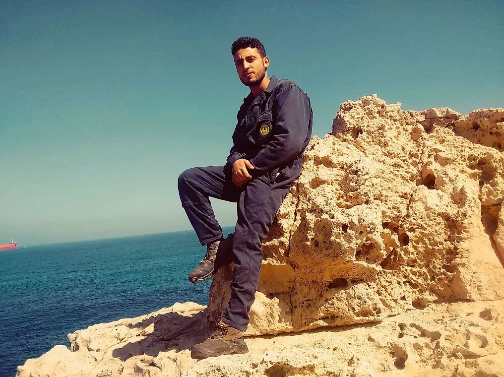 « En réalité, je fais partie d’une poignée de chanceux . », confie Khalifa. « J’ai obtenu mon diplôme d’études secondaires en 2011 et j’ai trouvé un emploi stable avec un salaire décent. Je ne suis pas un soudeur ordinaire comme Riyad [photographié ici avec le dos tourné vers la Méditerranée], qui fait des va-et-vient avec des contrats à temps partiel. » (MEE/Ali Khalifa)