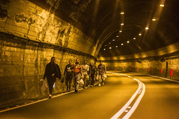 Après un « débarquement fantôme » sur l’île de Lampedusa, ces jeunes ont été déplacés de Lampedusa à Agrigente, où la police les a laissés partir avec une attestation d’expulsion, leur ordonnant de quitter le territoire italien dans un délais de sept jours. Sur cette photo, ils se dirigent vers la gare d’Agrigente pour poursuivre leur voyage.