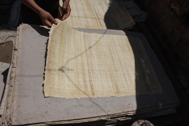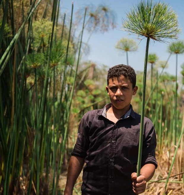 Aujourd’hui, à Qaramous, village au nord du Caire, dans le gouvernorat d’Ach-Charqiya (delta du Nil), des hommes partent récolter le papyrus, comme les Égyptiens de l’Antiquité plusieurs siècles avant eux. Dans de petits ateliers installés à leur domicile, des femmes rassemblent les tiges récoltées et entament le processus de transformation qui donnera le produit fini : du papier.