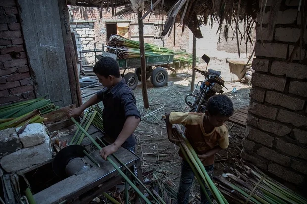 « Il fut un temps où nous nous faisions seconder en embauchant entre cinq et dix ouvriers, en plus des membres de notre famille », se rappelle el-Sayed, « mais maintenant il n’en est plus question – baisse de la demande et maigres profits obligent ». Ce travail est désormais effectué entièrement par la famille d’el-Sayed. Traditionnellement, les enfants du village, quand ils ne sont pas à l’école, aident leurs parents à fabriquer le papyrus.
