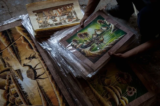 Dans une maison voisine, se trouve un petit atelier d’impression appartenant à Wagdy Mohamed Abdel Aal. Depuis l'âge de 7 ans, il colore les feuilles de papyrus et y imprime des motifs. La coloration des feuilles de papyrus se fait grâce à deux méthodes principales : la sérigraphie ou la peinture à la main.