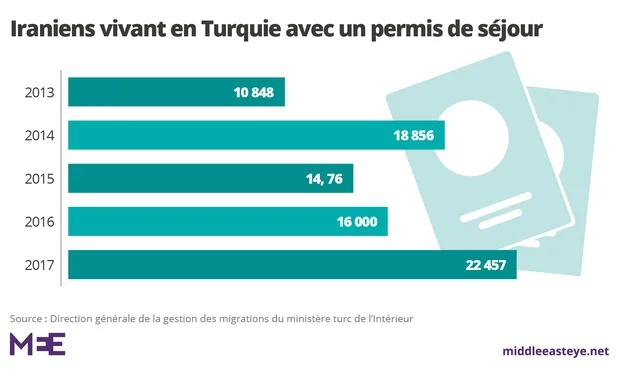 Un Iranien qui habite en Turquie depuis huit ans et travaille au sein de l’Association de solidarité avec les demandeurs d’asile et les migrants (ASAM), l’une des plus grandes organisations d’aide aux immigrés en Turquie, a déclaré à MEE qu’au cours des six derniers mois, le nombre de migrants iraniens qui sont venus à l’ASAM pour obtenir des conseils a augmenté de 25 %. Il s’est exprimé sous couvert d’anonymat car il n’est pas autorisé à donner des interviews.