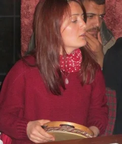 Légende photo : Serap joue du tambourin lors de la dernière répétition du groupe (MEE/Mat Nashed).
