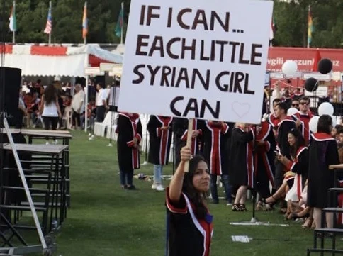 C’est avec toutes ces pensées en tête que Nourhan s’est présentée à la cérémonie de remise des diplômes de son université, portant une bannière où l’on pouvait lire : « Si moi je peux… chaque petite fille syrienne le peut ».