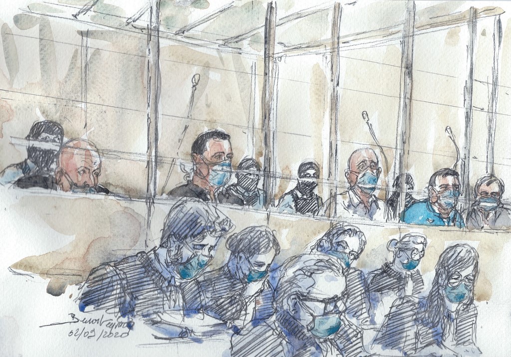 Depuis cinq jours, chaque matin, une routine s’est désormais installée en salle 2.02 de l’immense palais de justice de Paris. Aux alentours de 9 heures, les onze accusés sont escortés, menottés, par des policiers encagoulés jusqu’à leurs places dans deux box vitrés qui se font face.
