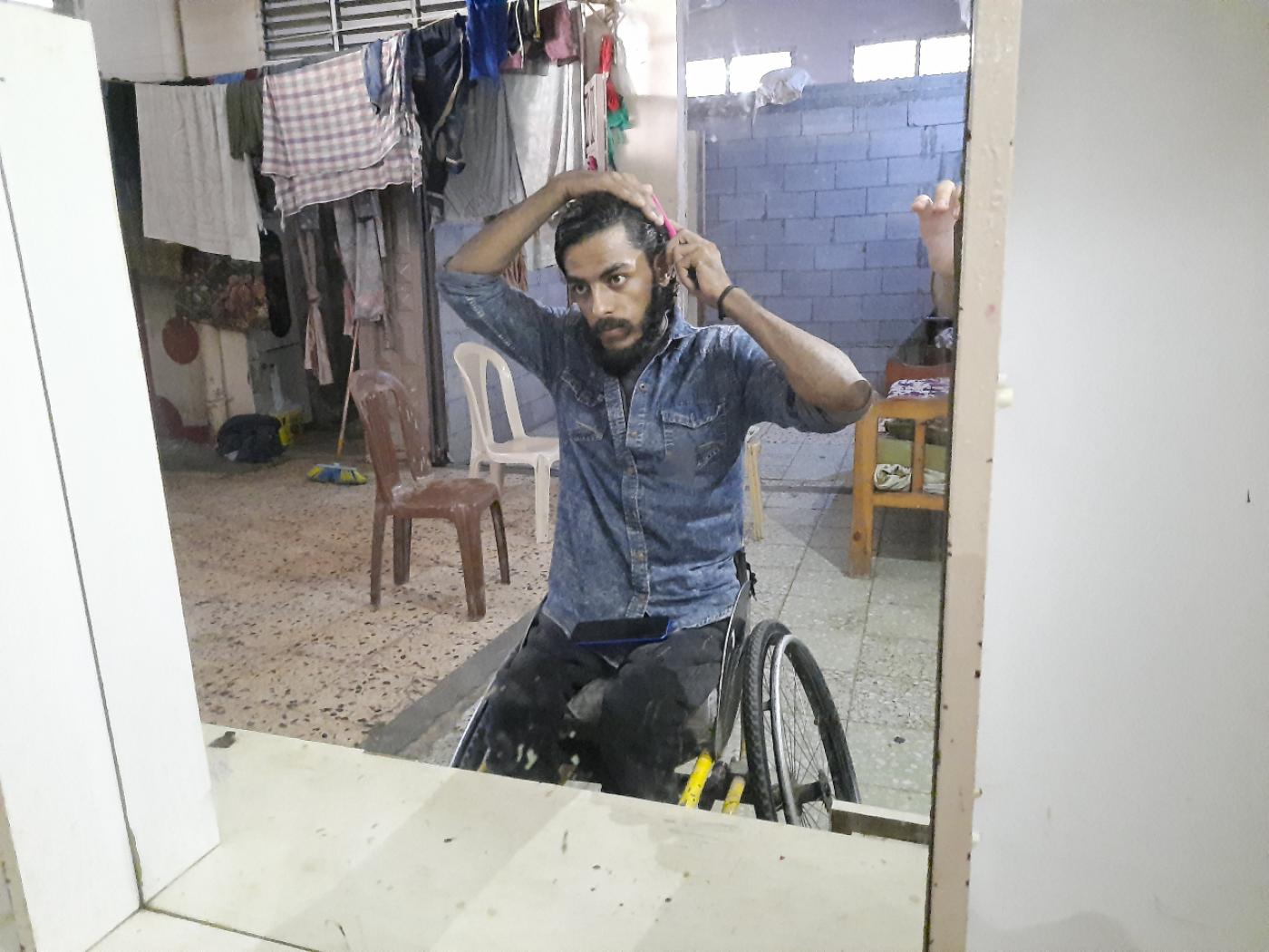 « Les personnes handicapées ont souffert énormément pendant la guerre. Par exemple, beaucoup d’entre eux n’ont pas pu fuir les bombardements proches à cause de leur lenteur de mouvement. Ou ils ne pouvaient pas utiliser les toilettes dans les écoles de l’UNRWA. »