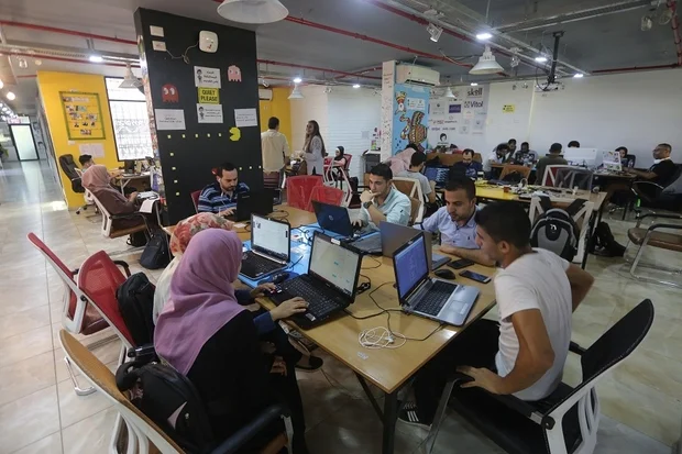 Dirigé par le groupe d’aide américain Mercy Corps, GSG offre un enseignement gratuit en codage informatique et un environnement dynamique pour les entrepreneurs, les programmeurs et les concepteurs de la bande de Gaza.