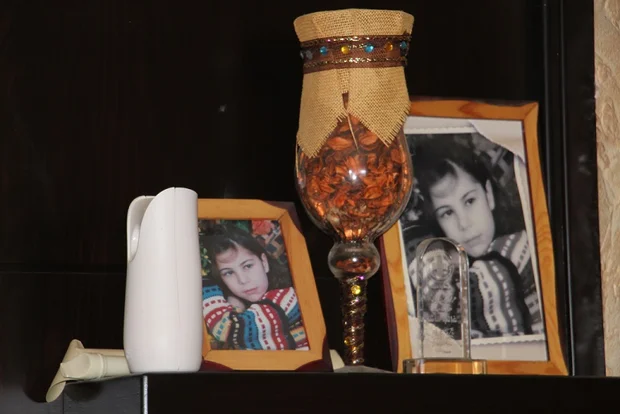 Dans le salon de la maison familiale de Ghaleb Hachem, une photo et quelques affaires en souvenir de Hanadi, morte à 12 ans dans un bombardement israélien (MEE/Philippine de Clermont-Tonnerre)