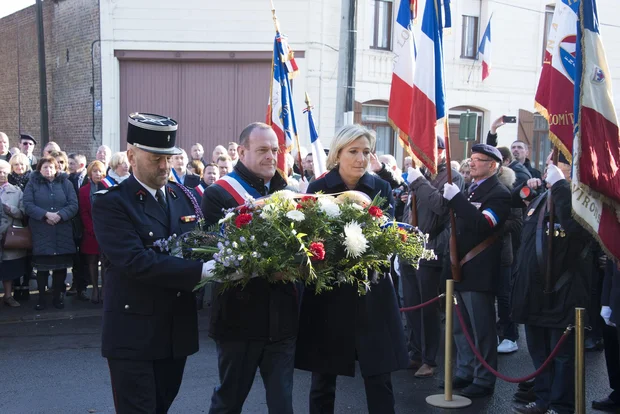 Le maire, Steeve Briois, avec Marine Le Pen lors de la cérémonie du 11 novembre (Facebook)