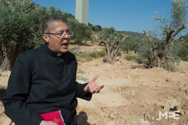 « Ils confisquent des terres pour protéger des colonies qui sont, à la base, construites sur notre terre », a déclaré à MEE le père Aktham Hijazin, curé de la paroisse de Beit Jala, tout en contemplant le sol retourné où les oliviers se dressaient autrefois.