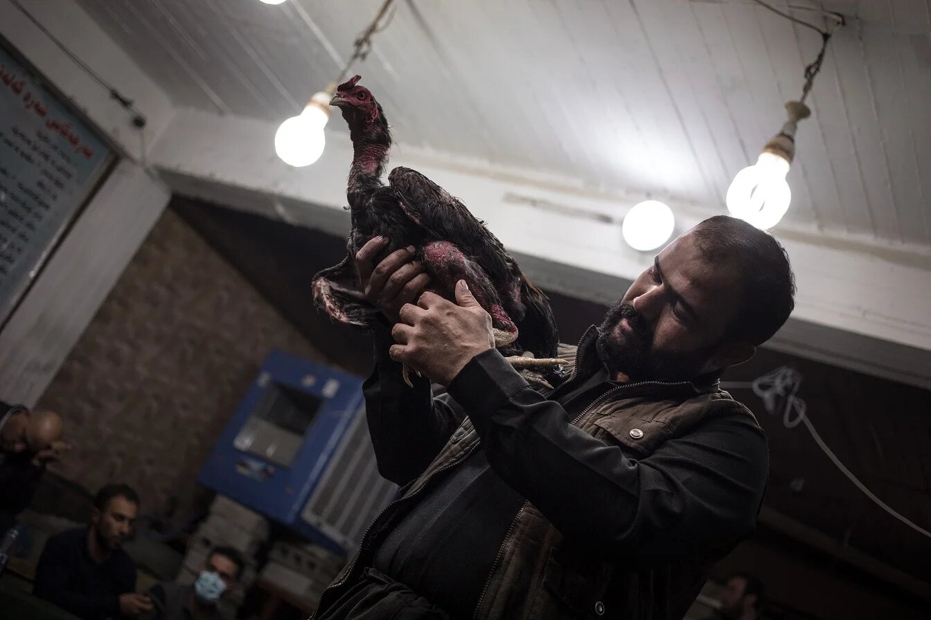 « Lui, c’est mon préféré, c’est mon champion. » Hassan, 20 ans, présent dans la foule, parie tous les soirs sur ses animaux préférés. Les coqs sont considérés comme de véritables athlètes, certains combattent depuis plusieurs années. La plupart sont importés de Turquie ou parfois d’Iran, illégalement par les montagnes. D’autres viennent directement de Chine ou du Viêtnam.