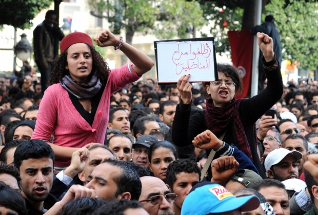 Tunisiennes participant aux manifestations contre le président déchu Zine el-Abidine Ben Ali (AFP). Selon l'Office National de la Famille et de la Population (ONFP), 47,6 % des femmes tunisiennes déclarent avoir été victimes d'une forme de violence au cours de leur vie