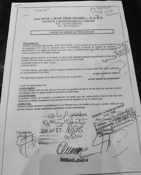 Suite à la constitution de la société, l’ex-président aurait signé un accord entre le Club africain et « Bab Jedid Mobile », en septembre 2015, permettant à cette dernière d’utiliser le nom, le logo, les couleurs ou toute autre propriété intellectuelle du Club africain.