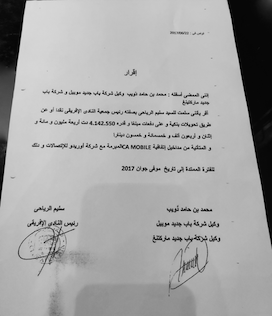 La manœuvre s’est achevée six mois plus tard, avec un présumé détournement des fonds générés par « CA Mobile ». L’instance dirigeante du club a retrouvé dans ce sens une « attestation » signée en juin 2017 par le gérant de Bab Jedid Mobile, Mohamed Ben Dhouib, indiquant qu’il certifie que Slim Riahi a retiré les recettes du contrat de sponsoring transférés par Ooredoo.