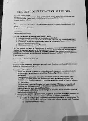 En effet, sur la première page du contrat, il est clairement écrit : « Le client souhaite faire appel au consultant afin de bénéficier de son expertise pour maximiser les bénéfices de ses quatre activités sur le champ politique. Son objectif final étant d’obtenir le meilleur score possible aux présidentielles, en vue de l’accès à la présidence à la première échéance qui va se présenter ou à la suivante, et afin d’obtenir le maximum de sièges aux prochaines élections législatives et aux suivantes ».
