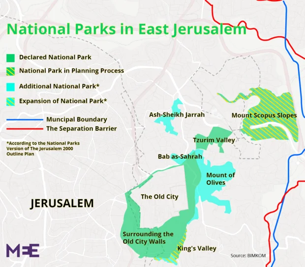 Cependant, Enass Masri a affirmé que la municipalité de Jérusalem avait préféré transférer ses espaces verts et ses quartiers palestiniens à la Direction des parcs, voyant là un moyen de contourner les règles habituelles de l’urbanisme.