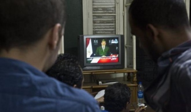 Photo prise en 2013 montrant le Président de l'époque, Mohammed Morsi, donnant une allocution télévisée (AFP)