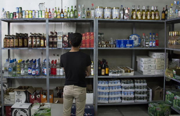 Dans son magasin, les bouteilles s'entassent jusqu'au plafond : on trouve de l'ouzo, de l'arak (un spiritueux régional aromatisé à l'anis) et des marques méconnues de vodka et de whisky bon marché que l'on trouve à Bagdad ou dans le quartier chrétien d'Erbil, la capitale de la région kurde voisine.
