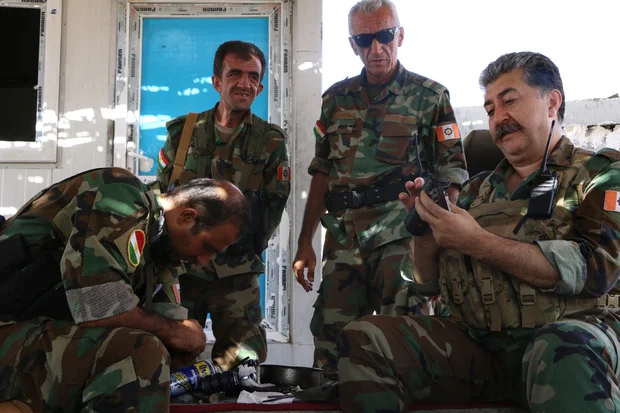 Leur commandant en chef, Hussein Yazdanpana, est un personnage haut en couleur : son physique et son épaisse moustache lui valent souvent d’être comparé au dictateur russe, Staline. Son uniforme affiche le drapeau de la région kurde irakienne, ainsi que l’insigne orange et blanc de son propre groupe. Il arbore une radio de combat, et sa poitrine est bardée de bandes de munitions.