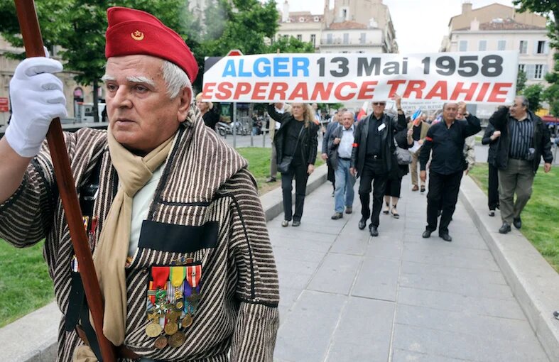 Le Front national, fondé par Jean-Marie Le Pen, un ancien d’Algérie qui a participé aux séances de tortures d’Algériens durant la terrible bataille d’Alger (1956-1957), a toujours défendu la nostalgie de l’Algérie française et se voulait porte-voix des « perdants » de la guerre d’indépendance : les rapatriés et les harkis, qui auraient été trahis par la France officielle en abandonnant l’Algérie aux indépendantistes, selon la doxa du FN.