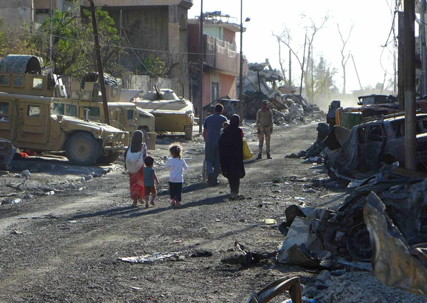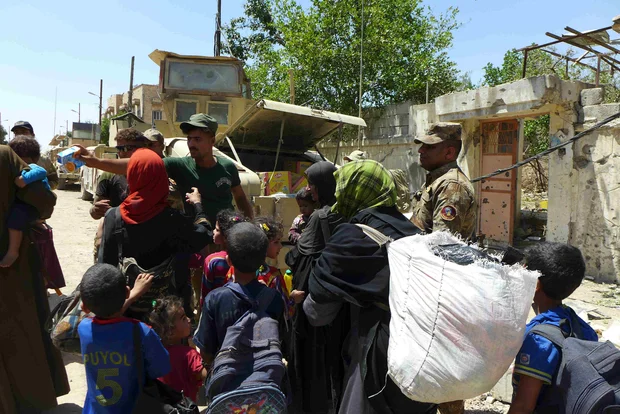 Alors que les combats s’intensifient, il n’y a plus de civils qui apparaissent, mais aujourd’hui, plus de 600 personnes se sont échappées de cette partie de la ville. C’est une bonne journée si l’on se rapporte à la moyenne habituelle dans l’ouest de Mossoul : le retrait des combattants de l’EI au cours de cette journée a permis à plusieurs centaines de personnes de tenter leur chance pour s’échapper malgré les frappes aériennes et les tirs de mortier.