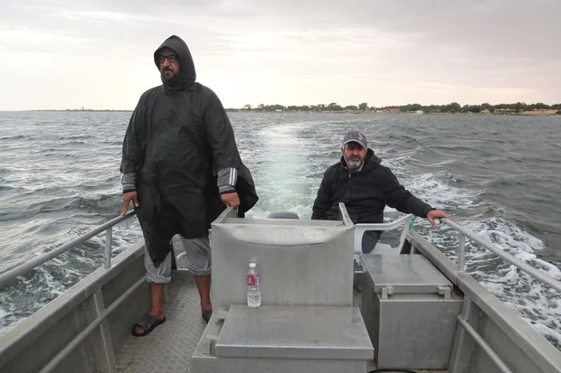 Les trois activistes ont garé leur voiture au port de pêche de la ville d’Abu Kammash – connue dans le coin sous le nom de « Bukamash » – avant de sauter dans un bateau minuscule. L’île est située à une courte distance mais les eaux sont peu profondes et ils devront parcourir les 200 derniers mètres à pied.