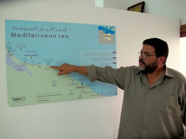 Sur une carte de la côte accrochée au mur, Dahe explique comment l’ancien dirigeant Mouammar Kadhafi a lancé en 2004 un projet de plusieurs millions de dollars visant à construire un immense complexe touristique à Farwa. Ce plan prévoyait 1 770 chambres d’hôtel, un parcours de golf et une marina qui pouvait accueillir 150 bateaux.