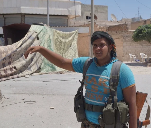 Pendant ce temps, des civils fuient tous les jours Manbij tandis que les Forces démocratiques syriennes se rapprochent de plus en plus du centre. Les enfants du coin font des signes de victoire en soutien aux FDS ou demandent du pain.