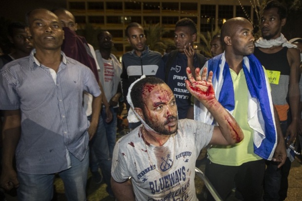 Un Israélien d'une communauté éthiopienne saigne suite aux affrontements avec les forces de sécurité, Tel Aviv, le 3 mai 2015