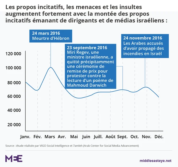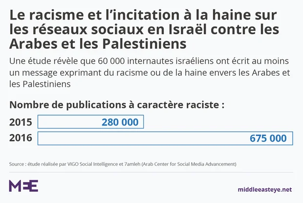 Les inquiétudes concernant les effets des propos incitatifs formulés par des dirigeants politiques ont été soulignées par une enquête publiée le mois dernier, qui a révélé une montée en flèche des abus commis en ligne par des juifs israéliens contre les Palestiniens.