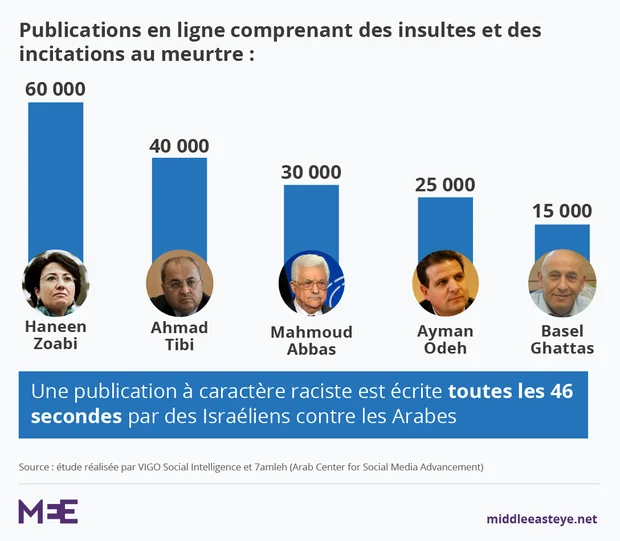 7amleh a indiqué que ses recherches ont montré que le plus gros des abus en ligne étaient dirigés contre les principales personnalités politiques palestiniennes d’Israël.