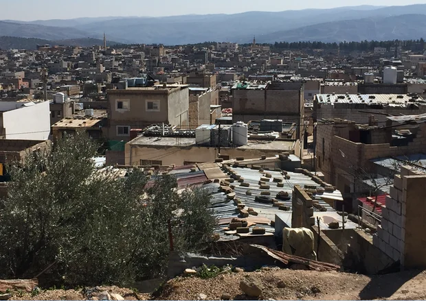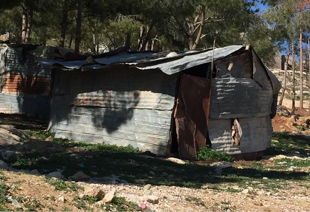 On peut apercevoir la détresse de Jerash depuis les collines qui le surplombe. Entre 35 000 et 40 000 personnes vivent dans un peu plus d’un kilomètre carré sous des toits de tôle ou des bâches en plastique maintenus en place par des briques. Quand il neige, des travailleurs humanitaires vont de maison en maison avec des étais en métal pour soutenir les structures contre l’effondrement. Mais Jerash n’est pas pour les faibles, quel que soit le climat.