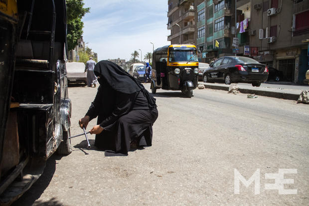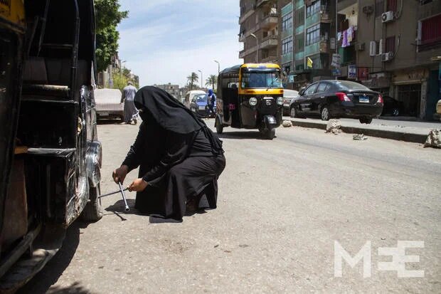Sabeh Ahmed, 38 ans, est de Shubra, une vaste banlieue du nord du Caire. Veuve, avec quatre enfants et une mère de 90 ans à sa charge, elle conduit un tuk-tuk pour gagner sa vie.