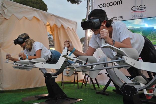 Lors du dernier MEG, la société a présenté un tel modèle de réalité virtuelle, Icaros. Sorte d’hybride entre un gyroscope et un appareil de musculation, l’engin permet à ses utilisateurs de manipuler avec leur propre corps un personnage de réalité virtuelle faisant du parachute.