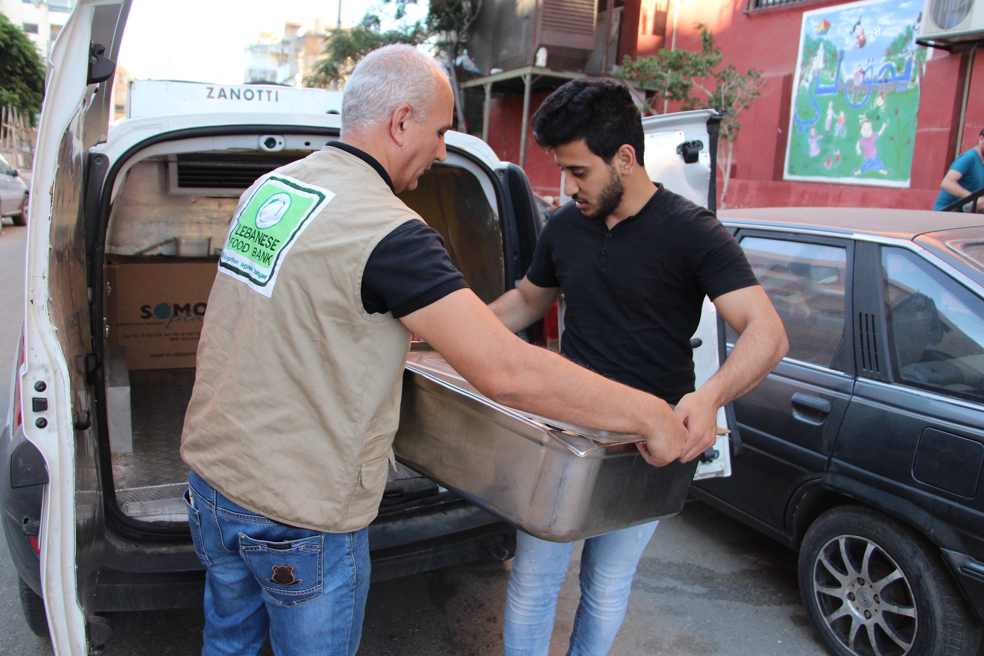 Trois fois par semaine, Marwann Saab, un des chauffeurs de la Lebanese Food Bank (LFB), vient récupérer les repas. Au total, une centaine de portions individuelles, composée chacune d’une salade, d’un plat de résistance et d’un dessert.