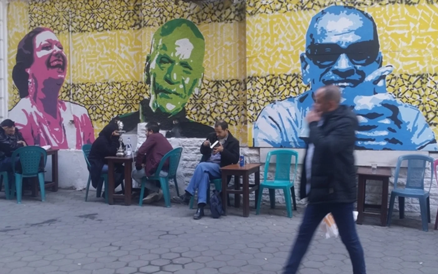 Sherif Nasr est le gérant d’un café dans le centre-ville du Caire. Il a engagé un graffeur pour peindre la fresque représentant Salah aux côtés d’autres icônes égyptiennes sur les murs qui entourent son café.