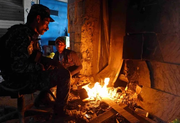 À l’entrée du marché couvert tout poussiéreux, un commandant de l’ERD s’arrête pour informer les soldats que le bulldozer de l’EI a enfin été neutralisé. La nouvelle est accueillie dans un silence de mort et par quelques hochements de tête. D’implacables tirs de mitrailleuse, tirés par les deux camps, ricochent autour du souk couvert. Les guillerettes sonneries des téléphones mobiles des soldats résonnent étrangement dans ce décor.