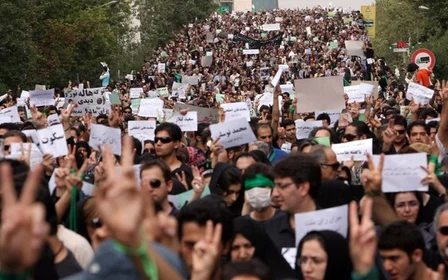 Dans la rue Shahid Beheshti, au cœur de Téhéran, trois jeunes hommes et femmes font retentir le klaxon de leur Peugeot 206 en brandissant le drapeau iranien.