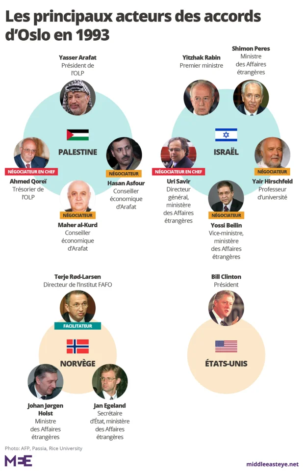 Cependant, les accords d’Oslo, dont le premier a été signé entre Israël et l’Organisation de libération de la Palestine (OLP) à Washington le 13 septembre 1993, sont aujourd’hui considérés comme une tentative de paix qui, tout en apportant certains bénéfices, a finalement échoué.