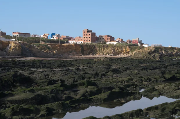 Derrière la vieille médina d’Asilah, l’exposition de la roche révèle là où de grandes quantités de sable ont été retirées. Le prélèvement du sable a également déplacé la ligne du front de mer à l’intérieur des terres, permettant aux marées entrantes de se déployer au-delà de ce qui était auparavant leur pallier naturel.