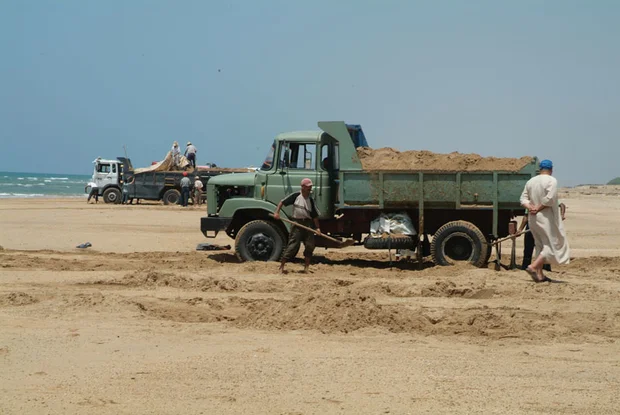 Asilah n’est pas la seule ville marocaine à avoir souffert de l’exploitation du sable. Des opérations similaires ont été recensées le long de la côte Atlantique du pays non loin de Larache, ainsi qu’à Kenitra et aussi loin que Dakhla, en direction du sud, parfois à une échelle industrielle si vaste que des kilomètres entiers de front de mer ont été détruits. Le coupable habituel est la demande de ciment, dont le sable est un ingrédient essentiel.